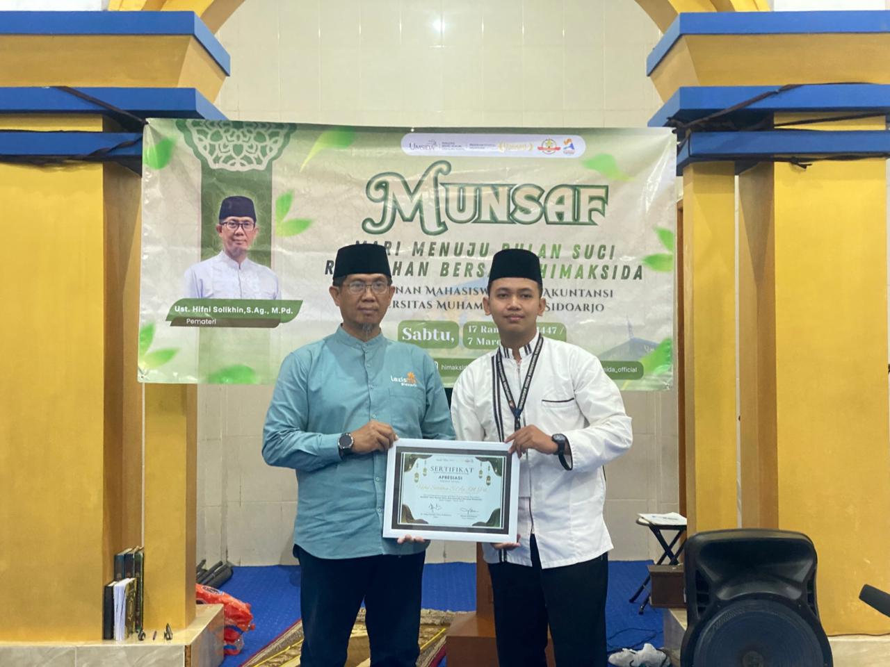 Himpunan Mahasiswa Akuntansi Umsida (HIMAKSIDA) menyelenggarakan kegiatan MUNSAF (Mari Menuju Bulan Suci Ramadhan Bersama HIMAKSIDA) pada Sabtu, 7 Maret 2026 di Masjid Baiturrahim Kampus 2 Umsida. Kegiatan MUNSAF ini diikuti oleh mahasiswa Program Studi Akuntansi yang ingin mempersiapkan diri secara spiritual dalam menyambut datangnya bulan suci Ramadhan. Acara dimulai pada pukul 15.45 WIB setelah proses registrasi peserta yang telah dilakukan oleh panitia.