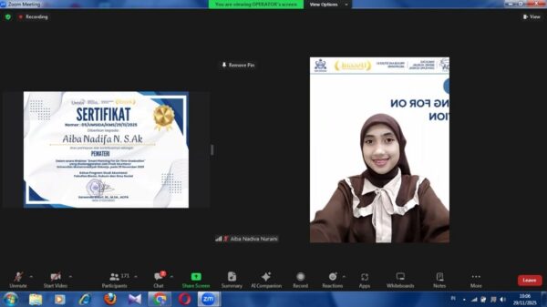 Sabtu, 29 November 2025 Program Studi Akuntansi UMSIDA sukses menyelenggarakan kegiatan Webinar dengan tema “Smart Planning for On Time Graduation”. Acara ini menghadirkan dua narasumber yang merupakan alumni berprestasi dari Prodi Akuntansi. Webinar dilaksanakan melalui platform Zoom Meeting dan diikuti oleh mahasiswa aktif dari berbagai angkatan. Kegiatan ini bertujuan memberikan wawasan praktis mengenai strategi lulus tepat waktu.