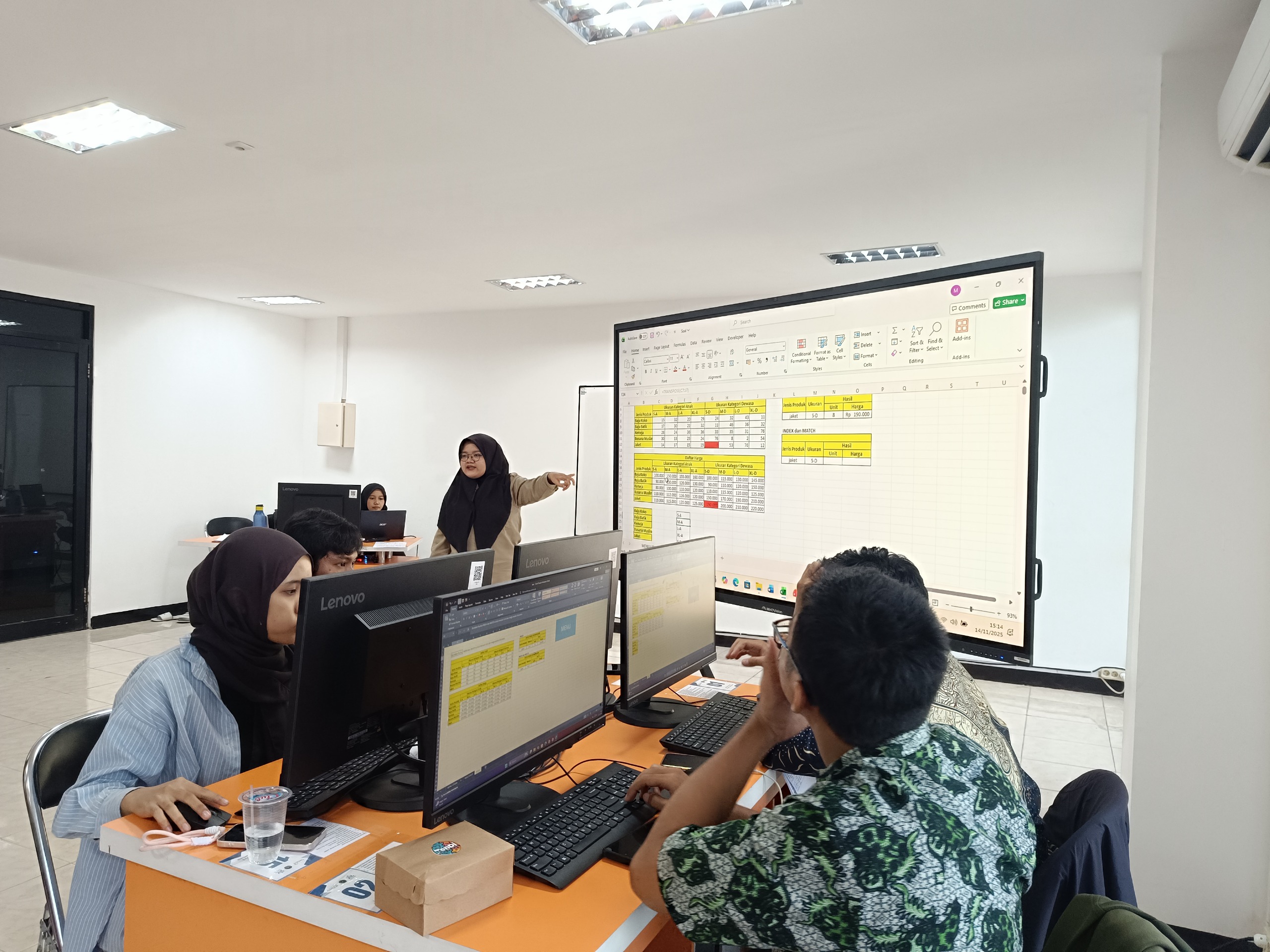 ini bertujuan meningkatkan kemampuan peserta dalam mengoperasikan Microsoft Excel sebagai alat pengolahan data yang efisien, sehingga mendukung pencapaian nilai Ujian Tengah Semester (UTS) maksimal melalui penguasaan rumus dan fitur dasar hingga lanjutan. Workshop ini diselenggarakan oleh Asisten Laboratorium Akuntansi (Aslab), dan diikuti oleh mahasiswa semester 1 Program Studi Akuntansi serta mahasiswa umum. Acara dibuka oleh Khabibatus Sa’ida selaku MC, dilanjutkan sambutan dari Mochammad Fariz Al Gozali sebagai Ketua Pelaksana. Sesi materi dipimpin oleh dua pemateri: Ria Aprilia dan Giezka Adinia Gunawan yang menyampaikan pengenalan fitur dasar Excel serta rumus-rumus esensial (seperti IF, Multi IF, VLOOKUP, HLOOKUP, Index, dan Match). Selama sesi, peserta mempraktikkan langsung di komputer laboratorium sambil mengikuti langkah-langkah di layar proyektor, pemateri membuka sesi tanya jawab interaktif untuk mengatasi kendala secara realtime. Acara ditutup dengan ucapan terima kasih dari MC atas nama panitia, disertai harapan agar peserta dapat mengaplikasikan ilmu Excel untuk mendukung prestasi UTS.